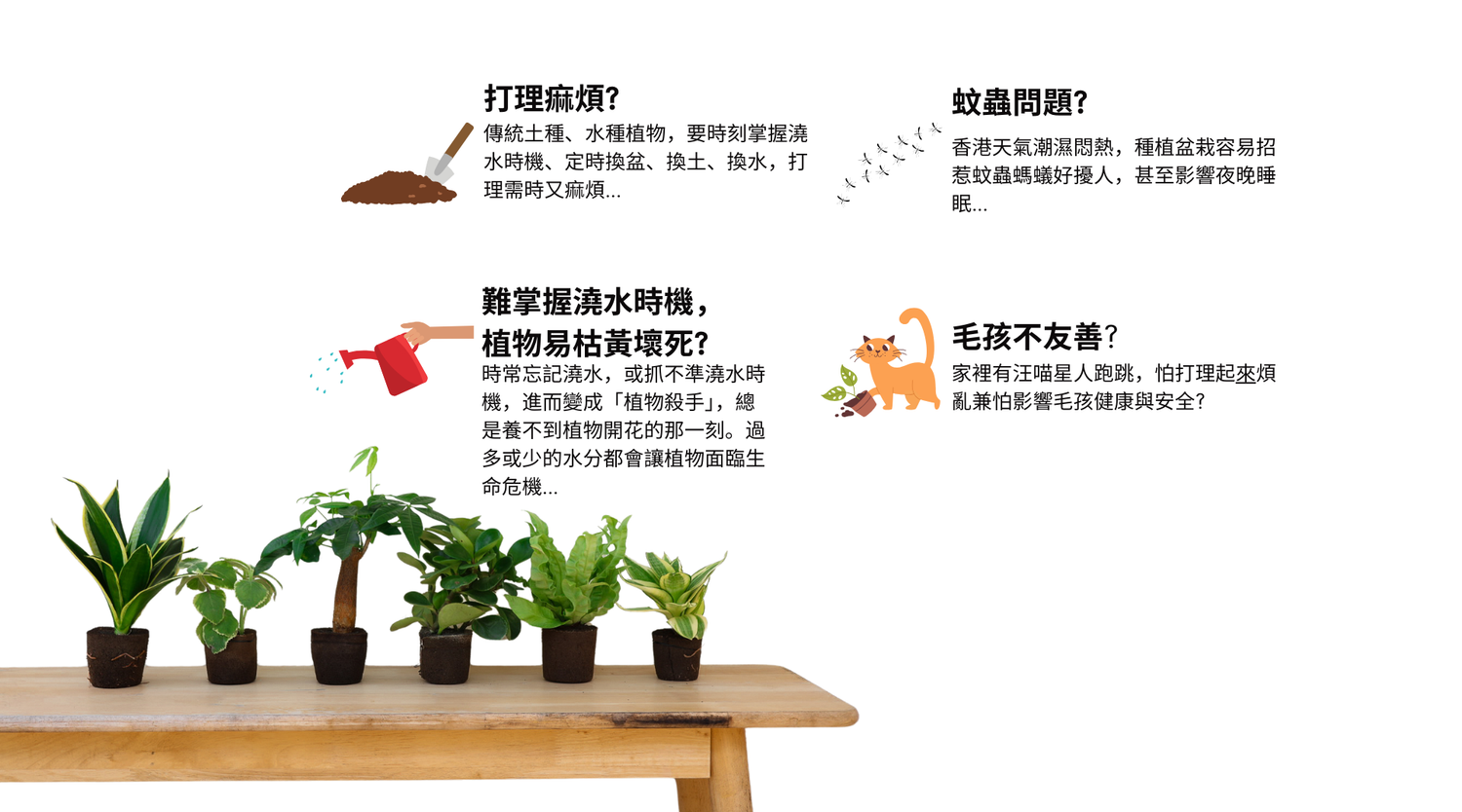 有別傳統泥種、水種植物,無土種植不怕寵物或嬰兒打翻,無需換泥打理輕易方便。